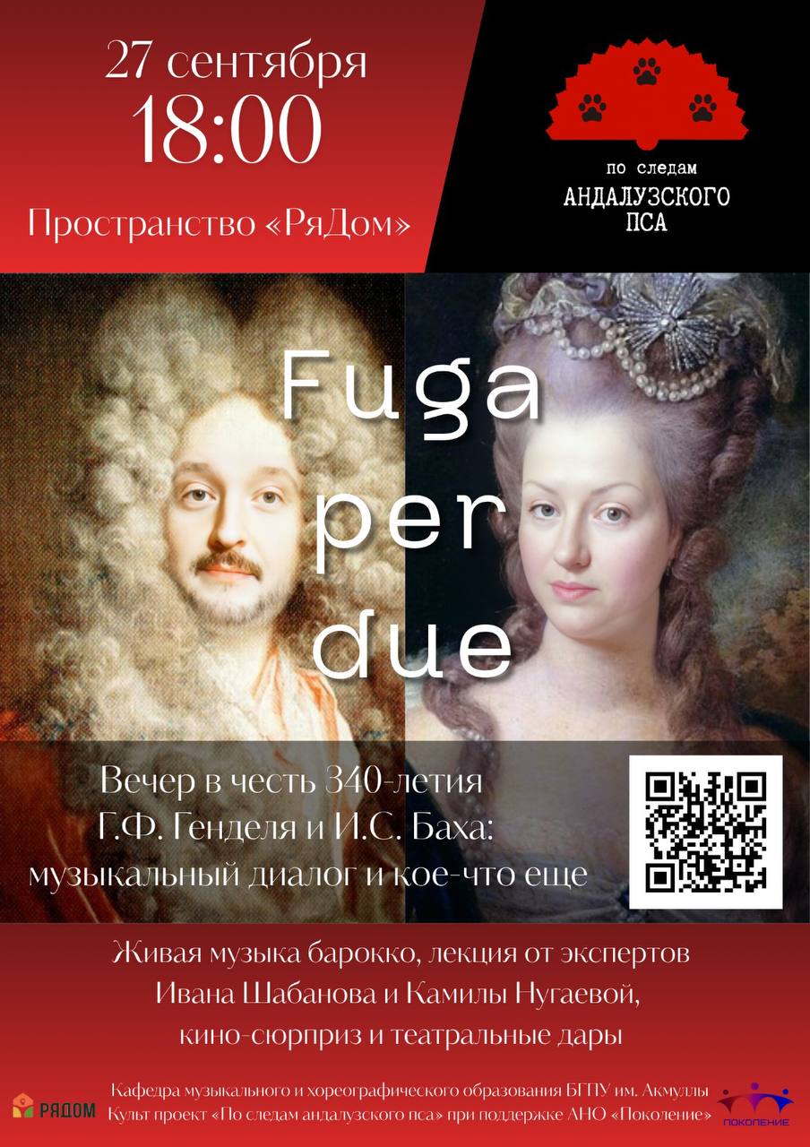 🗓️ 27 сентября в 18:00 в нашем пространстве состоится особенный вечер — «Fuga per due», посвященный творчеству двух титанов музыки: Баха и Генделя. 🎶